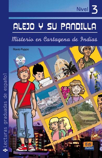 Alejo y su pandilla. Libro 3: misterio en Cartagena de Indias Alejo y su pandilla es una serie de lecturas graduadas dirigida a adolescentes e ilustradas a todo color. Actividades antes de la lectura que tienen el objetivo de introducir al lector en la historia que va a leer y motivar a la lectura. Actividades durante la lectura para comprobar el nivel de comprensión de lo leído hasta el momento, hacer predicciones sobre lo que va a ocurrir y provocar curiosidad para que el alumno siga leyendo. Actividades después de la lectura divididas en cuatro apartados: comprensión lectora, gramática y vocabulario, expresión escrita y expresión oral, todas ellas relacionadas con el  léxico y los contenidos gramaticales y funcionales que se repasan. Contiene actividades lúdicas y pasatiempos. Glosario sociocultural y lingüístico. Incluye la sección Conoce... con información sociocultural del mundo hispano.