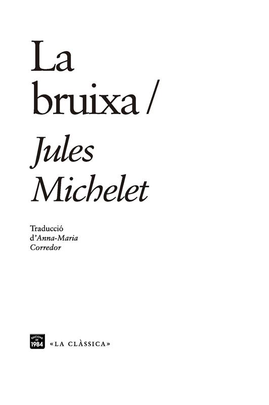 La dona, l'amor, la natura, però també els capellans i en particular els directors espirituals, van obsedir Michelet; tots aquests temes els trobem a La bruixa. La bruixa, ja ho sabem, tradicionalment és una dona malvada, menyspreada, tan perversa que l'Església en va fer cremar un munt en horribles fogueres sobretot sota la Inquisició: les actes dels judicis per bruixeria ho demostren, és a dir, demostren que allò va passar, però Michelet no es conforma amb això. Precisament se sorprèn que cap dels seus predecessors estudiosos de la bruixeria no s'hagi interessat pel que ell anomena «la cronologia moral de la bruixa», com si la bruixa hagués sorgit de sobte del no-res, i és així que ell es proposa indagar per què en un determinat moment la dona, per qui ell sentia tanta admiració, va arribar a ser bruixa. Michelet troba una paraula per resumir l'origen d'aquesta figura tan maltractada històricament: desesperació. Si en la primera part del llibre es dedica a «rescatar» la dona desesperada que hi ha darrere la bruixa, en la segona part es proposa fer reviure les angoixes de les noies víctimes dels convents, anorreades per frares i monges sovint tanoques o amb una salut mental dubtosa, que cometen els pitjors abusos d'una manera impune i, el que és més ignominiós, emparats per les altes esferes polítiques i eclesiàstiques. Michelet ens parla d'una història fosca que acaba al país de la llum: en efecte, l'escriptor va posar el punt final a la seva obra a Toló, en ple Migdia, ciutat a la qual dedica belles descripcions. Ben segur que la idea de Michelet de rescatar la dona traient-la de la foscor de l'edat mitjana i del segle XVII i de rehabilitar-la fent-ne apologia a través de la figura de la bruixa és una valuosa contribució al progrés de les idees, molt d'acord amb els nous aires del seu temps.