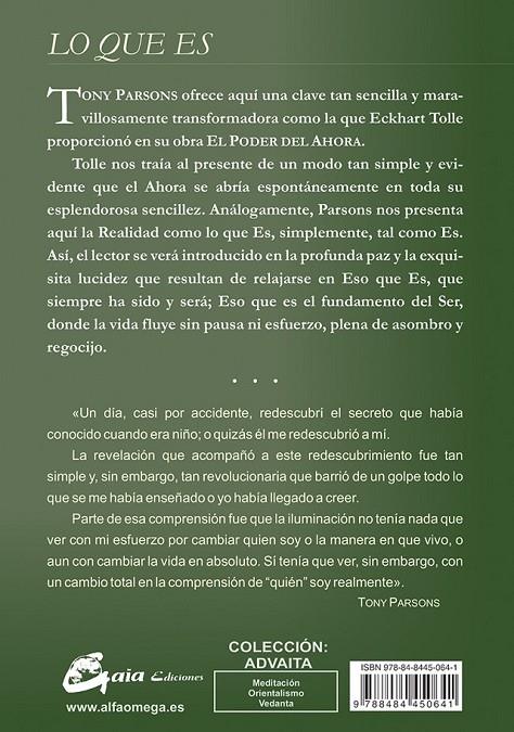 Así, el lector se verá introducido en la profunda paz y la exquisita lucidez que resultan de relajarse en Eso que Es, que siempre ha sido y será; Eso que es el fundamento del Ser, donde la vida fluye sin pausa ni esfuerzo, plena de asombro y regocijo.