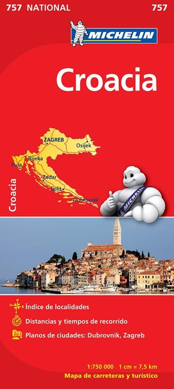 El Mapa National Croacia, editado a escala 1/750 000, guarda además otros interesantes contenidos, tales como los planos de la ciudades de Dubrovnik o Zagreb, índice de localidades, cuadro de distancias y tiempos de recorrido.