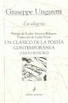 La Alegría es un diario poético de guerra, que incluye poemas fechados en lugares concretos del frente donde combatió Ungaretti, por lo que pueden considerarse auténticas actas notariales del estado emocional de un poeta-soldado que se da ánimos para ser valiente. Pero también es una exhortación a l...